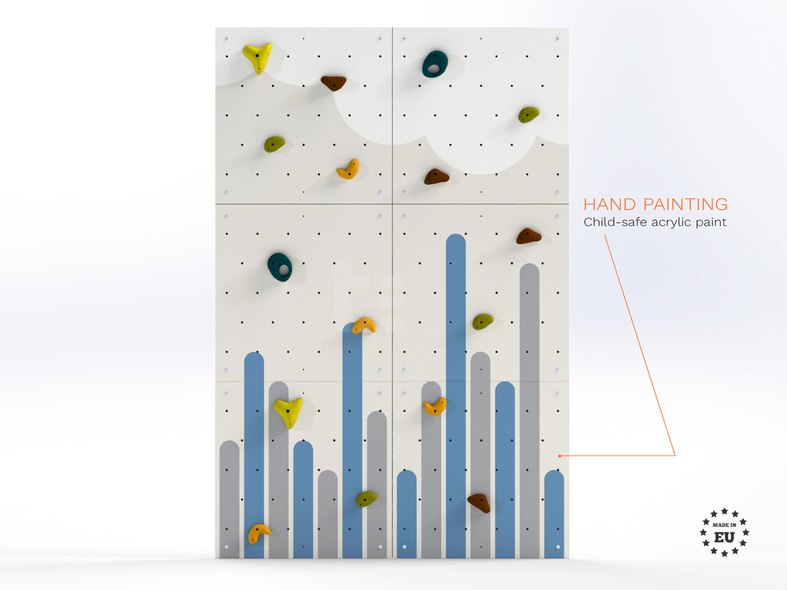 Uvoľnite ducha svojho malého dobrodruha s lezeckou stenou LEZUN Farebné hory! Táto drevená stena pre deti je vzrušujúce vnútorné ihrisko, ktoré podporuje fyzickú aktivitu, riešenie problémov a koordináciu. Vďaka svojim žiarivým farbám a dizajnu inšpirovanému horami premení každú miestnosť na vzrušujúci horolezecký terén. Pevná a odolná táto lezecká stena je vhodná pre deti aj dospelých a umožňuje tak celej rodine zapojiť sa do zábavy. Lezecké chyty navrhnuté s ohľadom na bezpečnosť sú ergonomické a textúrované pre bezpečné uchopenie. Nechajte predstavivosť vášho dieťaťa stúpať, keď dobýva nové výšky a buduje silu, rovnováhu a sebadôveru pri každom výstupe!